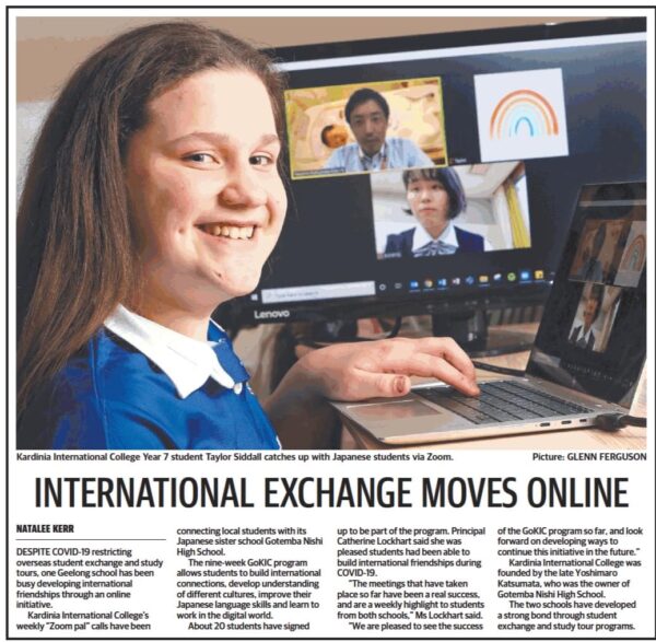 今日は新聞社が取材に来てくださったこともあり、生徒の皆さんもいつも以上に張り切っていました。この様子は、土曜日の岳麓新聞と日刊静岡で掲載予定ということです。また、カーディニアも地元紙であるGeelong Advertiserにて掲載されました。お互いの地域にとっても注目される取り組みとなっているようです!世界はつながっています!