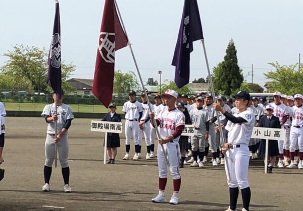 5月5日(日)に御殿場・小山4校定期戦が行われ、本校野球部が3連覇を達成しました!1回戦で御殿場南高校と対戦し、湯山君(3年)がホームランを2本放つ活躍で14対8で勝利しました。決勝は御殿場高校と対戦し、7対6のサヨナラ勝ちで優勝を果たしました。サヨナラヒットを放った横溝君(3年)は最優秀選手賞に輝くなど最高のパフォーマンスを見せてくれました。大いに盛り上がった4校定期戦でしたが、夏に向けて非常にいい大会となりました。