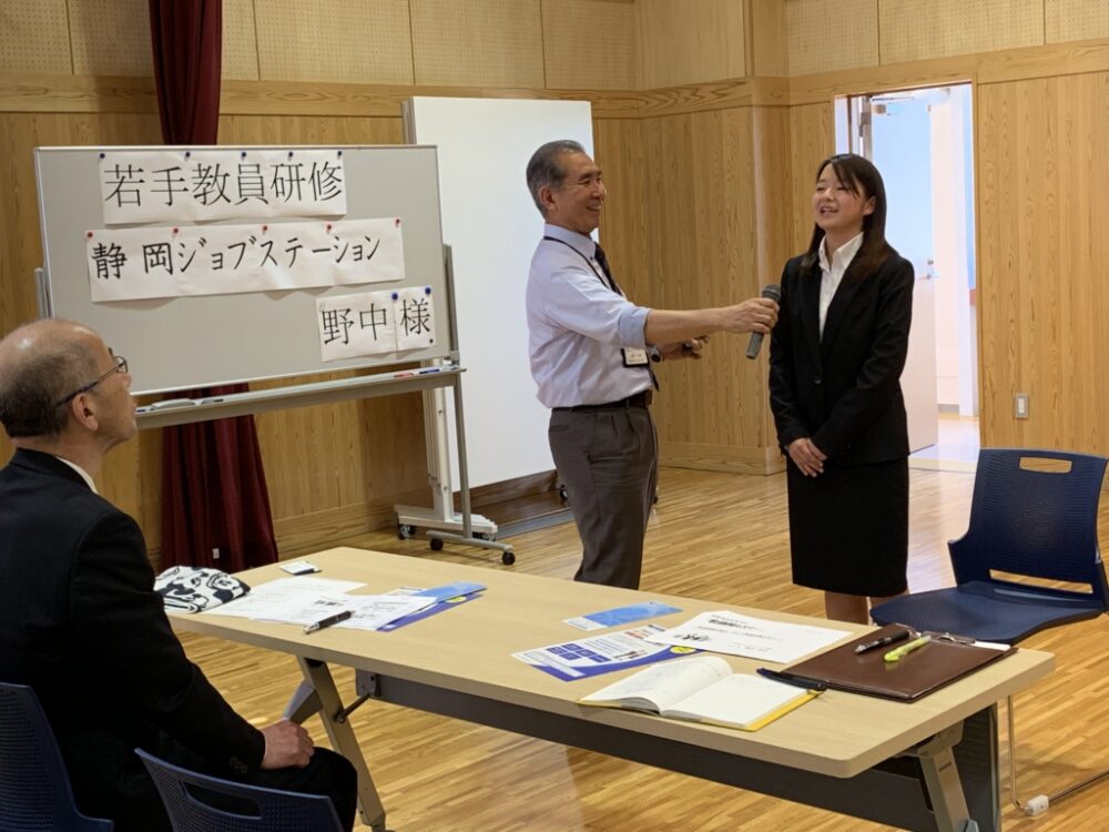 本日のテストが終了し、午後からは若手教員研修が行われました。今回のテーマは静岡ジョブステーションの野中和夫様による「就職環境の変化と面接対策」と土屋副教頭による「調査書・推薦書の書き方」について学びました。若手以外にもたくさんの本校教員が参加し、非常に実践的で具体的な研修となり、有意義な研修となりました。野中様、お忙しい中ありがとうございました。