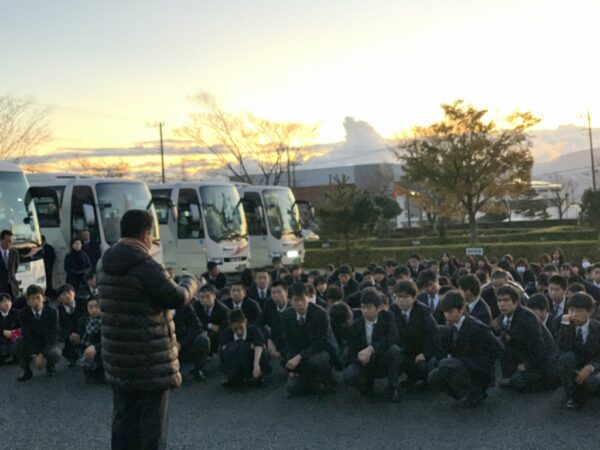 12月3日(火)に2年生が九州修学旅行に出発しました。早朝の集合にもかかわらず、遅刻者ゼロ、体調不良者ゼロで無事に九州に向けて出発しました。これから羽田空港から鹿児島空港に向かいます。心配された天気も快晴でしたので、いいスタートが切れました!舘岡先生の後ろ姿もカッコいい!!