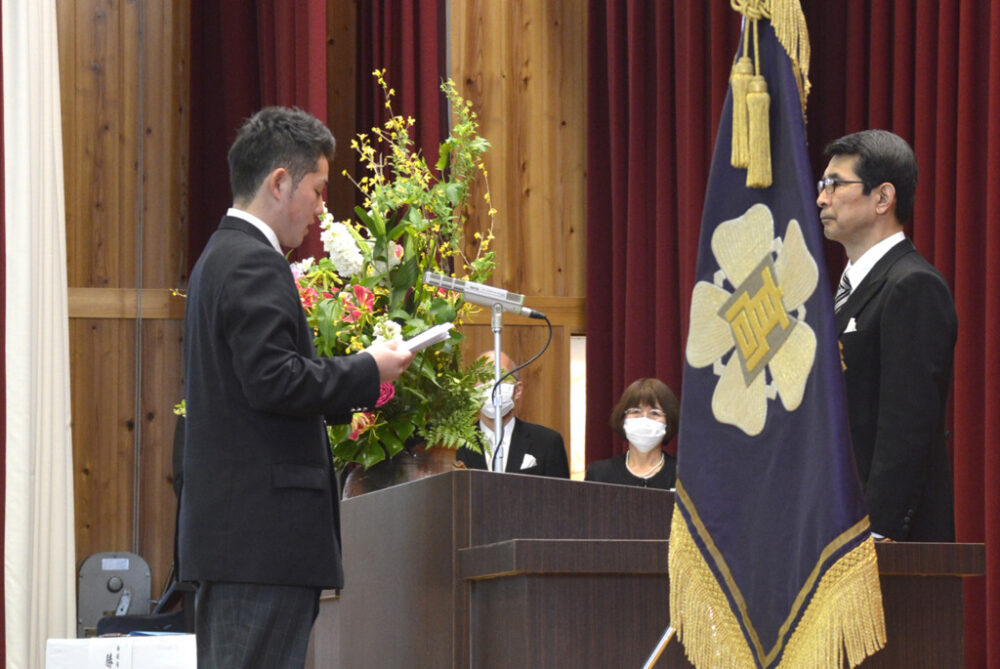 そして、一番感謝を忘れてはいけないのは、ここまで育ててくれた家族です。いつもは照れくさく、感謝の気持ちを伝えることができませんでした。私たちがつらく逃げ出したくなった時も優しく励ましてくれました。毎日、学校へ行き、仲間と楽しい時間を過ごせたのは、家族の支えがあったからです。仕事で疲れているのにも関わらず、毎朝早くからお弁当を作ってくれたり、休日には部活動の大会を見に来てくれたり、私たちをどんな時でも気にかけ、一番応援してくれました。中には家族と離れて生活をし、改めて存在の大きさを感じた人もいると思います。当たり前に過ごせて来れたのは、見えないところで私たちを支えてくれたからです。時には反抗し、文句も言いましたが、甘えてばかりの一八年間だったと思います。ですが、ここまで家族に支えられた一八年間は本当に幸せでした。今度は私たちが支えていき少しずつ恩返しをしていきます。時には壁にぶつかり、辛く悩むこともあるかもしれません。その時は温かく見守っていてください。本当にありがとうございました。これからもよろしくお願いします。