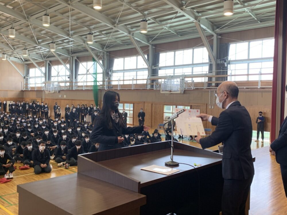 学校の行事はことごとく影響を受け、中止を余儀なくされた行事も多くありました。そんな中でも、年間皆勤・精勤を果たした生徒は非常に多く、英検などへの合格も例年以上に多く達成しました。未だ経験したことのない状況でも、自分たちで考えて主体的に行動することの大切さを身を以て感じる一年でした。御殿場西高校の目指す生徒像、学校のあり方として、「主体的であること」をこの一年で取り組んでまいりました。うまく行ったこと、うまく行かなかったこと、その全てに意味がある一年であったと思います。そしてうまく行かなかった時こそ、自分の成長や改善になったのだと思います。来年度もどんなに困難で未知であるとしても、挑戦をし続ける姿を継続しましょう。