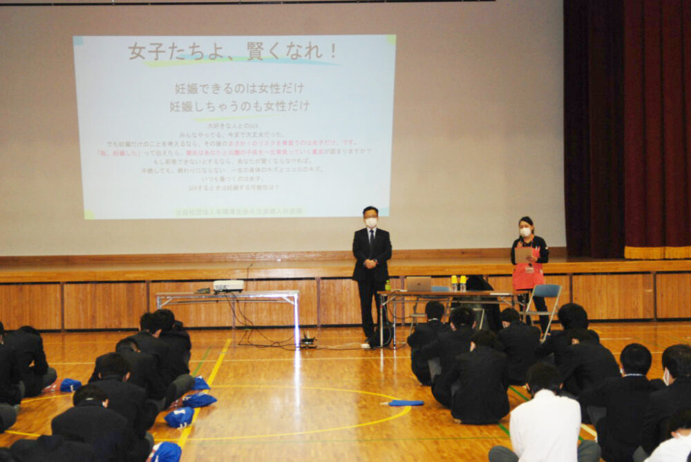 共立産婦人科医院の杉下先生を講師にお招きし、思春期である高校生に対して、性に関する理解を深める講座をしていただきました。1年生たちも、これから大人になっていく上で、心身ともにさまざまな変化を経験していくことになります。自分の心身に対する正しい理解、他者に対する正しい理解を深め、責任ある大人になってもらいたいと思います。