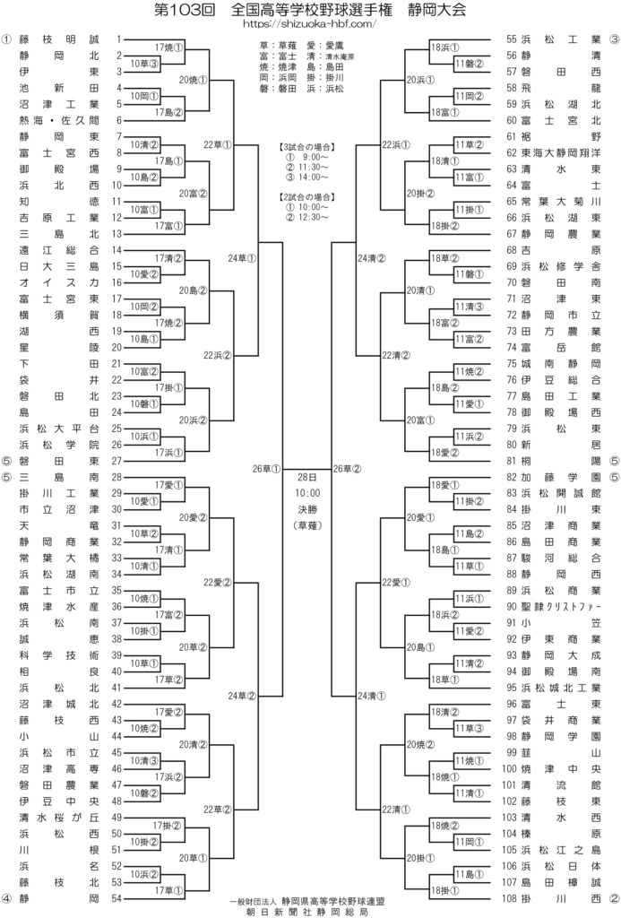 第103回 全国高等学校野球選手権 静岡大会トーナメント表