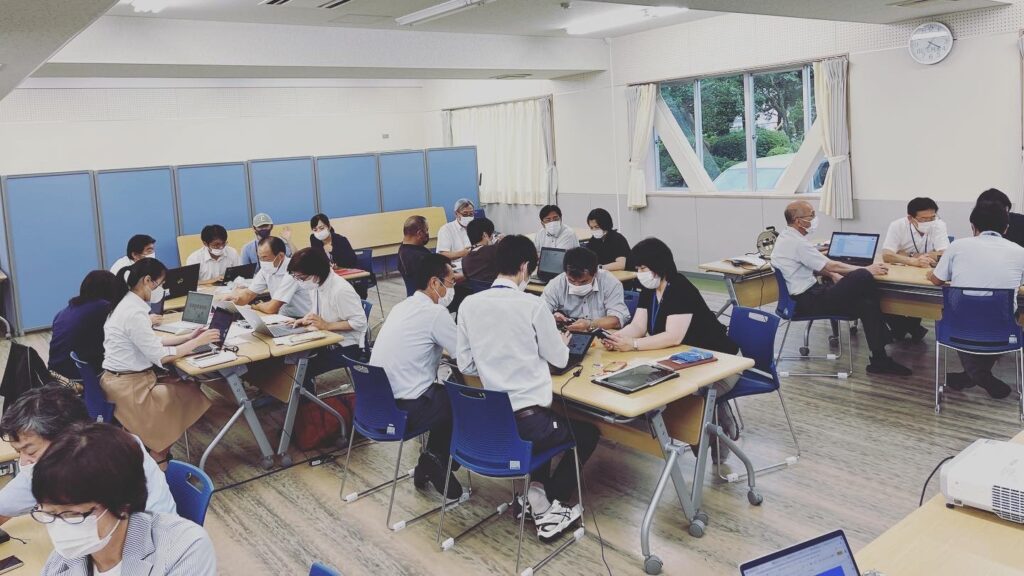 ICTについての学び合いですが、生徒は一人もいません。教員たちによる学び合いです。