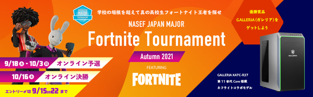 9月18日 (土) 10時から行われたNASEF JAPAN MAJOR Fortnite (フォートナイト) Tournament Autumn 2021の大会結果です。