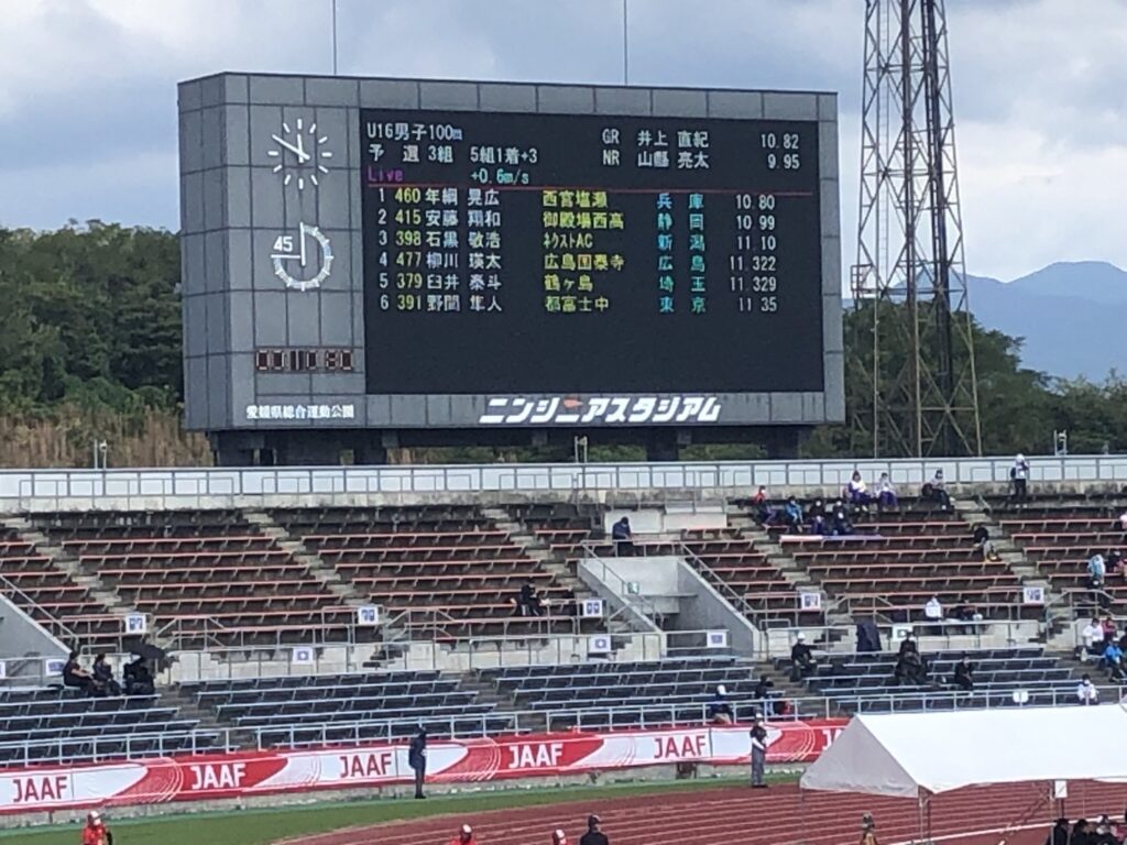 10月22日(金)に愛媛県総合運動公園陸上競技場(ニンジニアスタジアム)にてU16陸上競技大会が行われました。