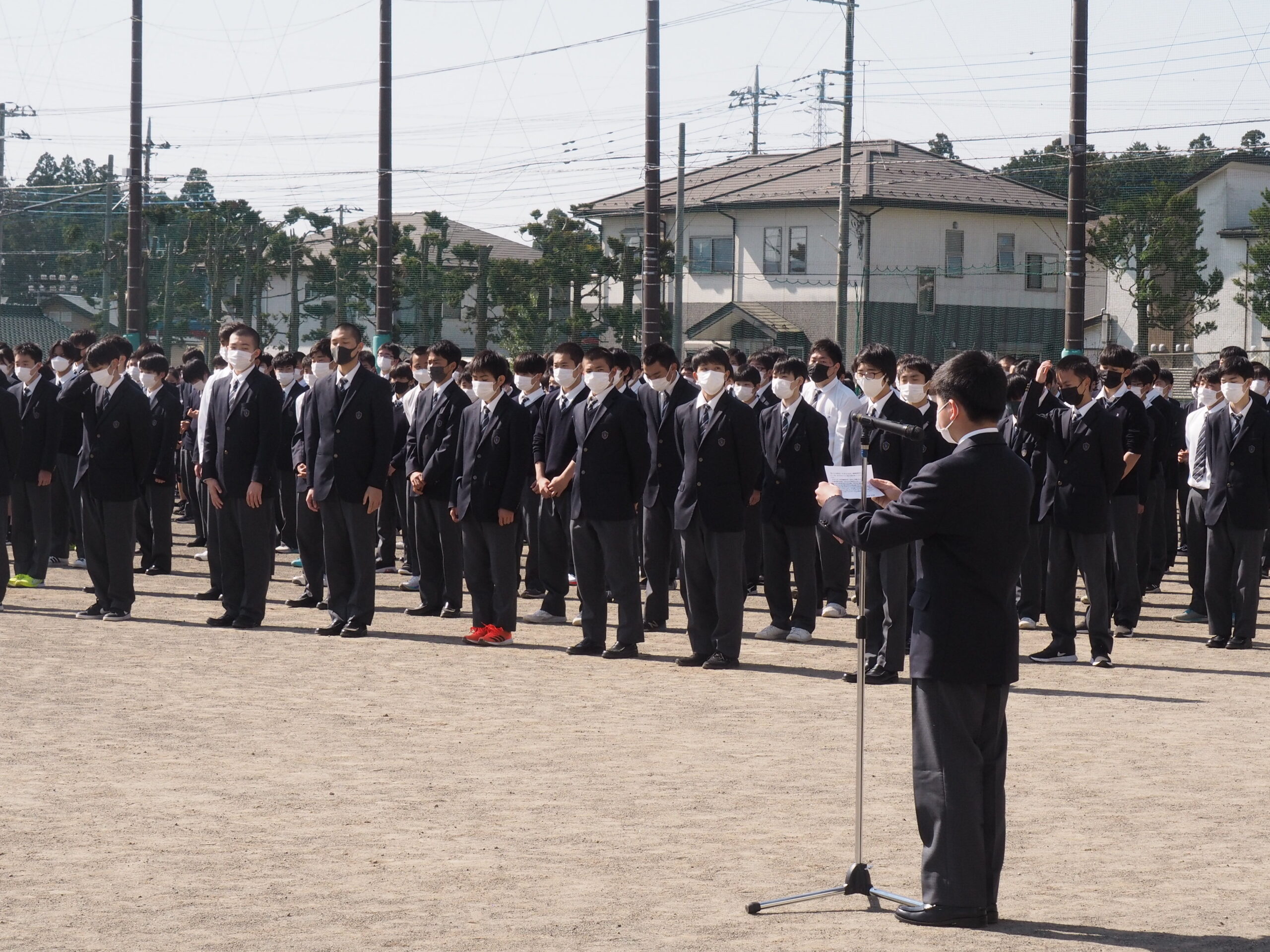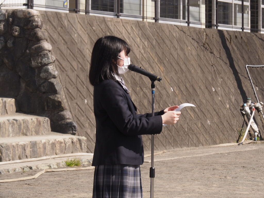 昨日、入学式が無事に終わり初めて3学年が揃いました。 密を避けるため全学年グラウンドに集合し、対面式を行いました。 生徒会長が歓迎の言葉を新入生に送り、新入生も代表生徒が元気に挨拶をしました。