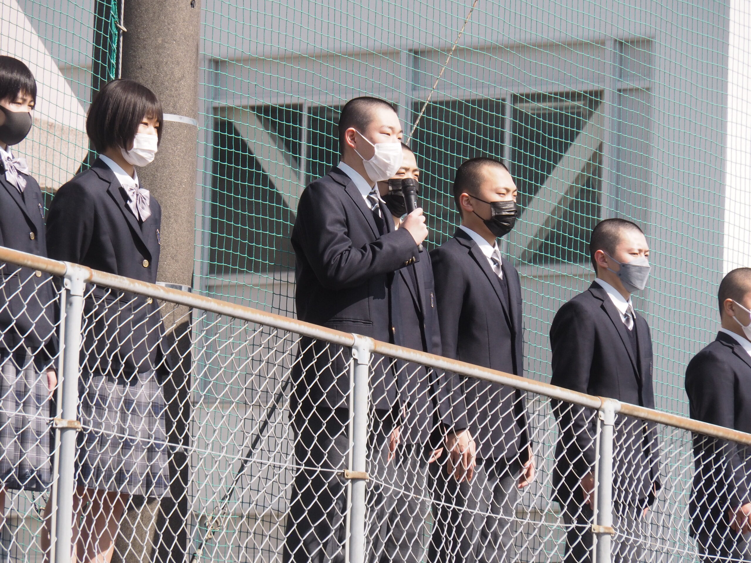 その後、令和3年度全国高校空手道選抜大会代替試合を控えた空手道部の壮行会も実施。 生徒会から花束が贈呈され、主将が意気込みを語りました。試合は4月21日~24日に行われます。応援よろしくお願いします!!