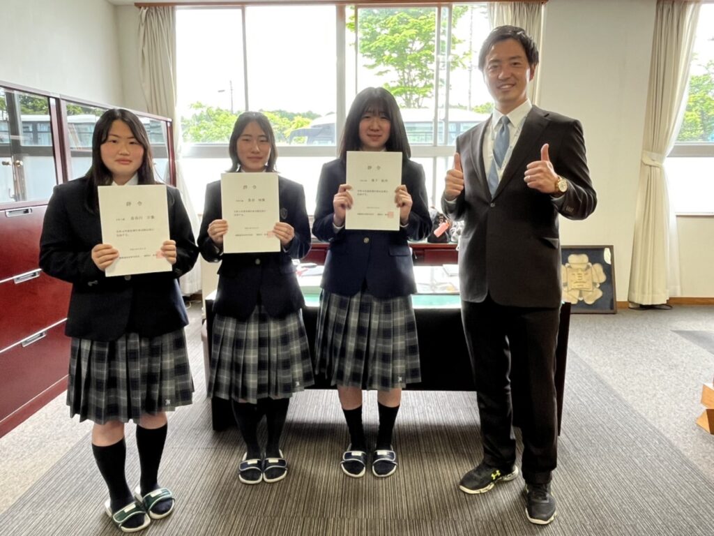 昨日5月11日の昼休みに、前期生徒会役員へ辞令交付を行いました。 緊張した面持ちで辞令を受け取った3人は校長先生の前で意気込みを述べました。 学校のリーダーとしてこれからよろしくお願いします!