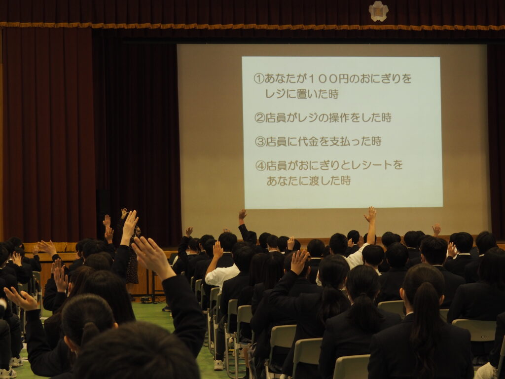 本日、5・6時間目に3年生を対象とした「成年年齢引き下げに関する講座」を実施しました。 契約について学び、契約の結ばれるタイミングやマルチ商法など気を付ける事をクイズや映像から学びました。 生徒たちはこれから成年を迎えるため真剣に聞き入ってました。 正しい知識をもって正しい判断のできる大人になって欲しいものです。