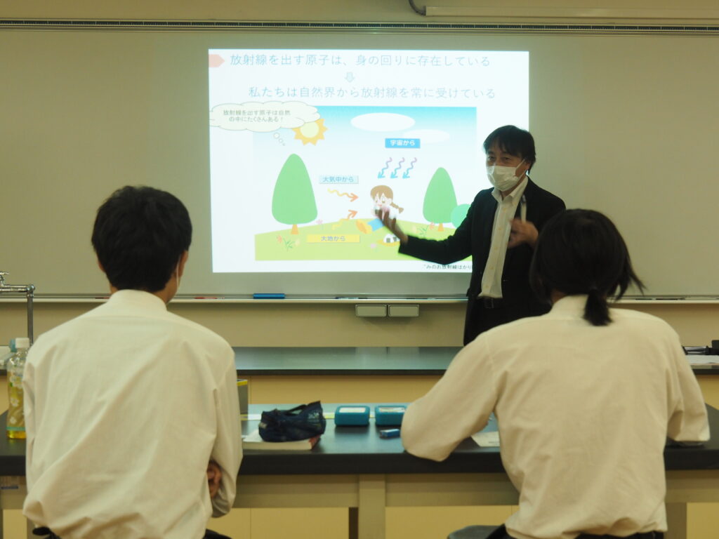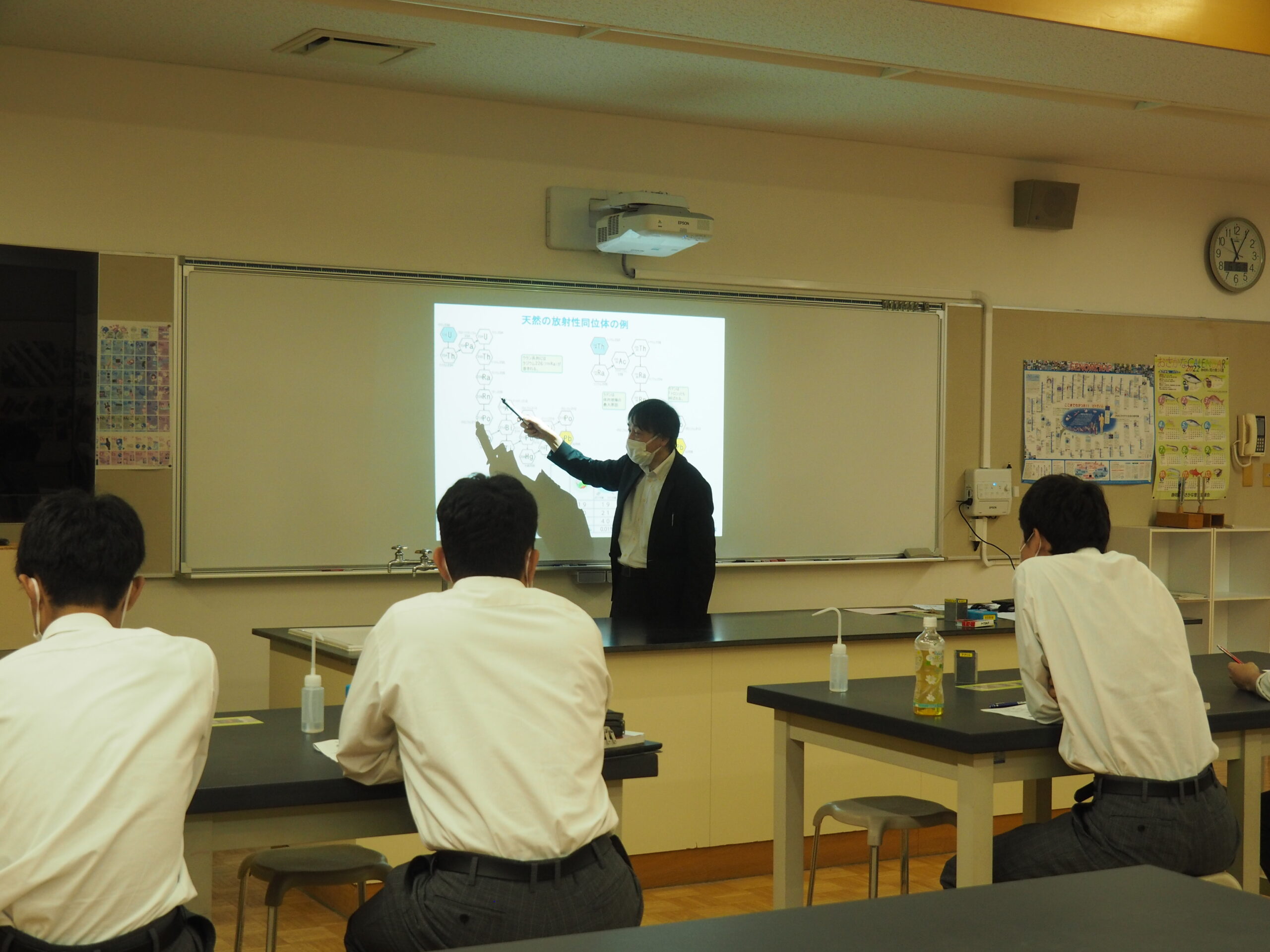 2022年6月16日(木曜日), 加藤真介先生(横浜薬科大学)を講師としてお招きし、「原子力とエネルギー」をテーマに出前講座を実施致しました。 日常生活での放射線について講義していただき、霧箱を使用した定性実験では、改めて放射線について考える契機となりました。 生徒からは、実際に測定し、放射能が与える影響について興味を持つことができた、より深く学んでみたくなったなどの感想が生徒から出ました。