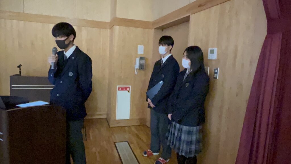 緊張した様子でしたが、わかりやすく他校の事例や客観的なデータも用いながらプレゼンテーションを行いました