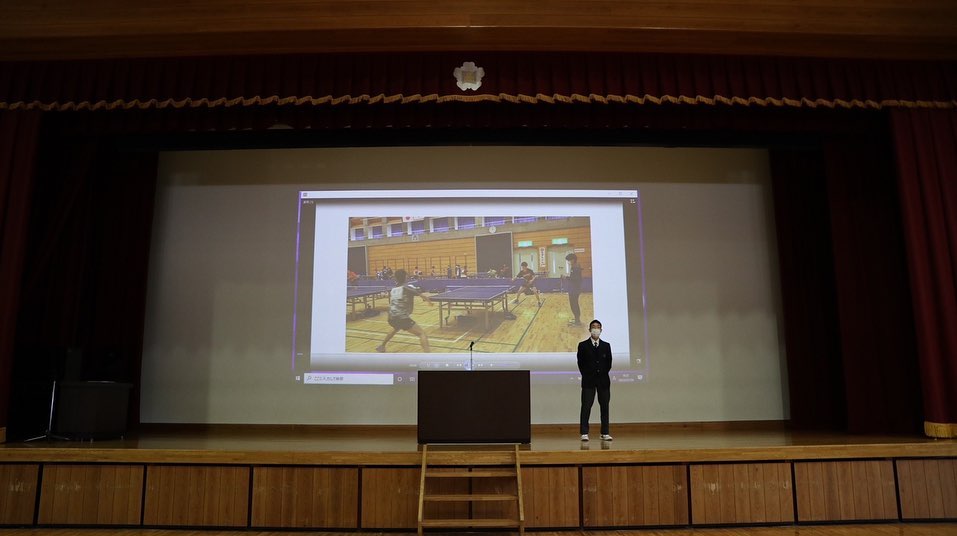 さらに生徒会による卓球部2年の越智くんの全国大会出場の壮行会が行われました。