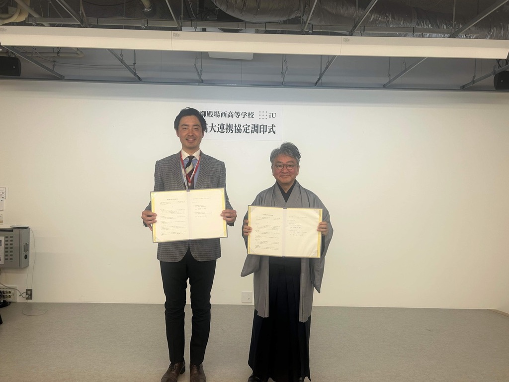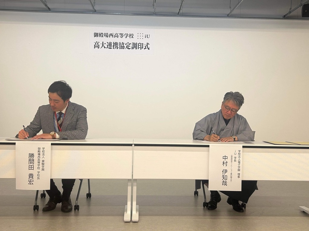 4月19日(水)御殿場西高等学校はiU(情報経営イノベーション専門職大学)との包括連携協定を締結しました。今回の連携協定を機に、アントレプレナーシップ教育に関する授業の実施や、iU生と交流を促進し、授業は先生が考え、実施は教室で行うという学校の固定概念を取り除きます。これにより社会ニーズをより反映した、多彩な教育の提供を実現します。