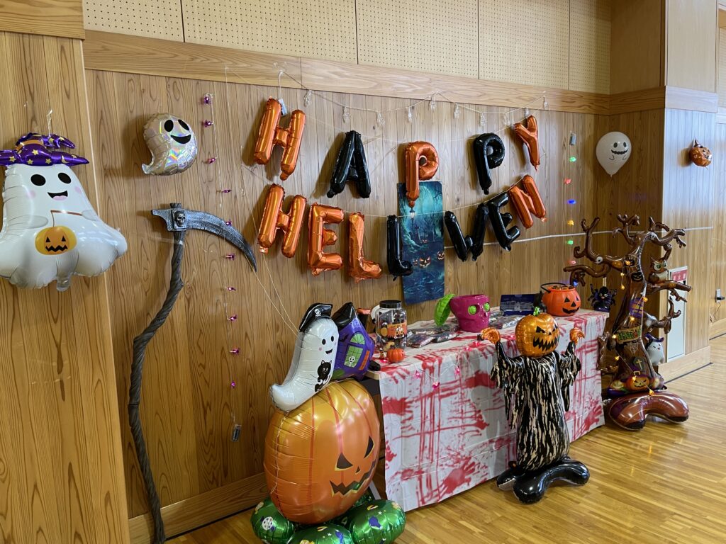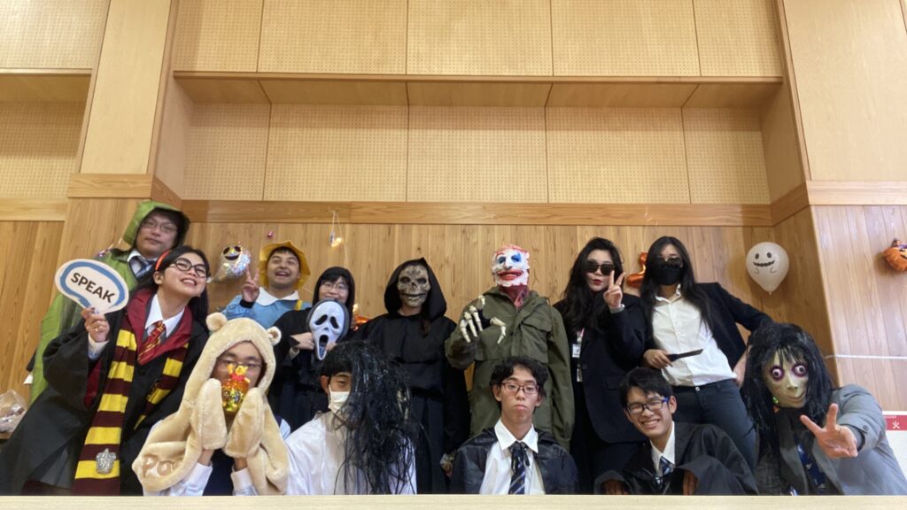 ALTのグレッグとリサと仲間たちが集まり、ハロウィンの仮装やビンゴをしてワイワイしていました。