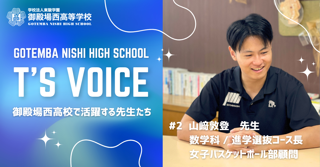 御殿場西高校で活躍する先生方を紹介する『T’S VOICE』を更新しました。 第2回は進学選抜コース長である山﨑敦登先生にインタビューを行いました! 御…