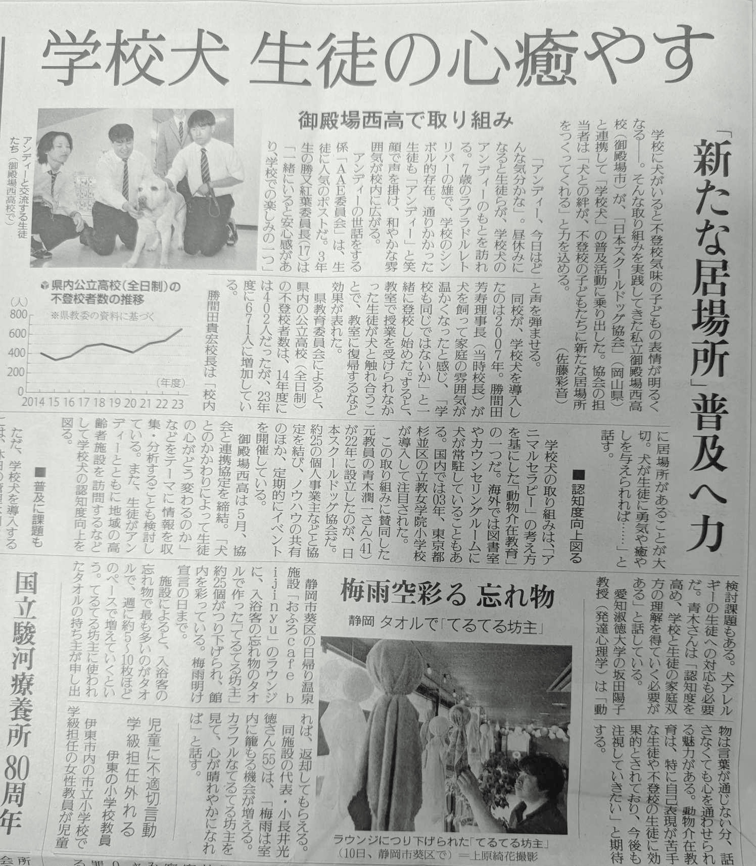 6月11日(水)読売新聞に本校のスクールドッグの取り組みが掲載されました。 5月に締結した日本スクールドッグ協会との連携協定により、日本全国で認知が拡大している本校…