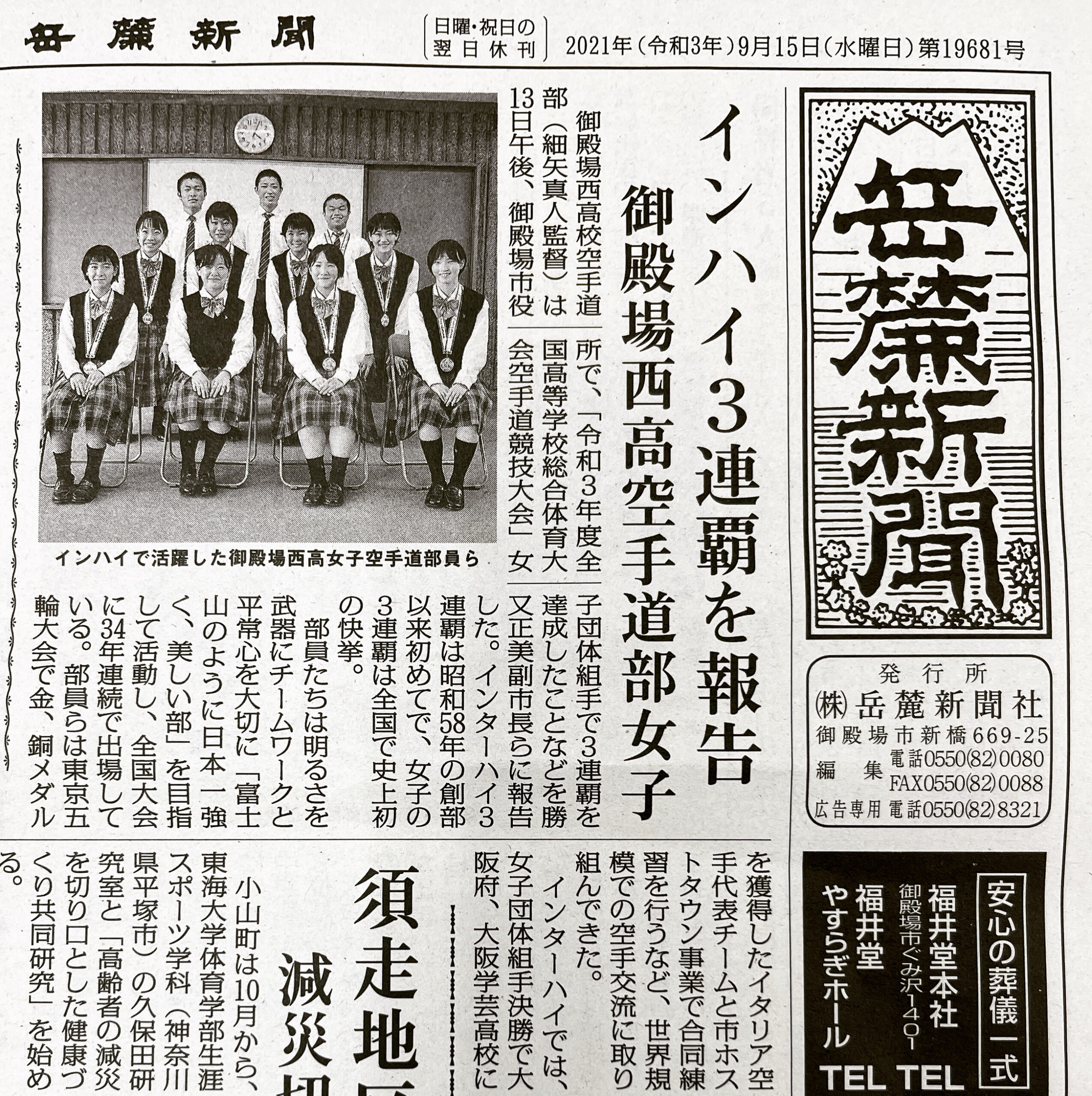 9月13日(月)空手道部が御殿場市役所にインターハイの結果報告をするために表敬訪問をさせていただきました。 緊張した面持ちの生徒たちでしたが、力強いコメントを残し、…