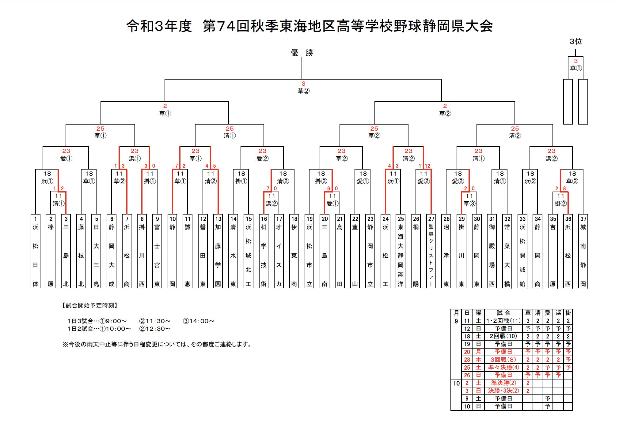 今週末の9月18日(土)秋季東海地区高等学校野球静岡県大会の1回戦が行われます。 応援よろしくお願い致します! なお、日程が変更しておりますのでご注意ください。 ま…