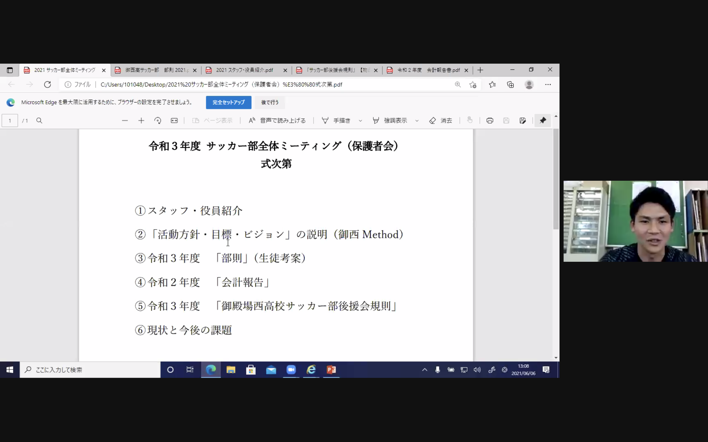 6月6日(日)13:00より、サッカー部の令和3年度保護者会及び全体ミーティングを実施しました。 コロナ禍ということもあり、Zoomを利用したオンラインでの開催とな…