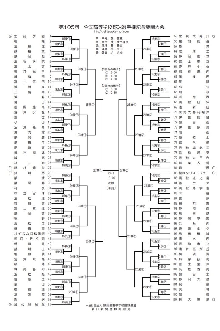 6月26日(日)静岡県高校野球選手権大会の抽選会が行われ、本校の夏の大会の対戦相手が決定しました。詳細は以下の画像をクリックしてご覧ください。 7月9日(日)9:0…