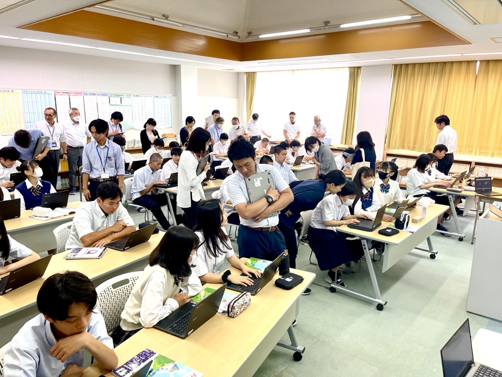 6月28日(水)御殿場西高等学校では東部地区の幼保小中学校の先生方30名近くを本校にお招きし、京都芸術大学教授の本間正人先生を講師に「ChatGPT活用授業公開研修…