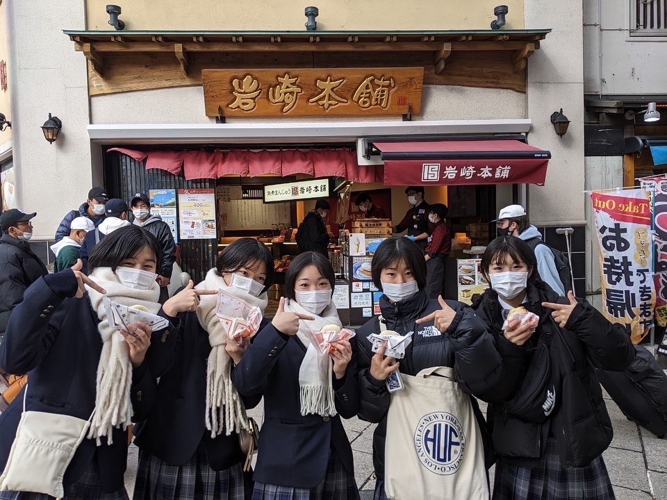 2日目は長崎市内の班別自主研修となりました。長崎駅でバスを下車し、それぞれの班の目的に応じた研修を行いました。たっぷり午前午後を各班で過ごし、仲間との親睦も深まる時…