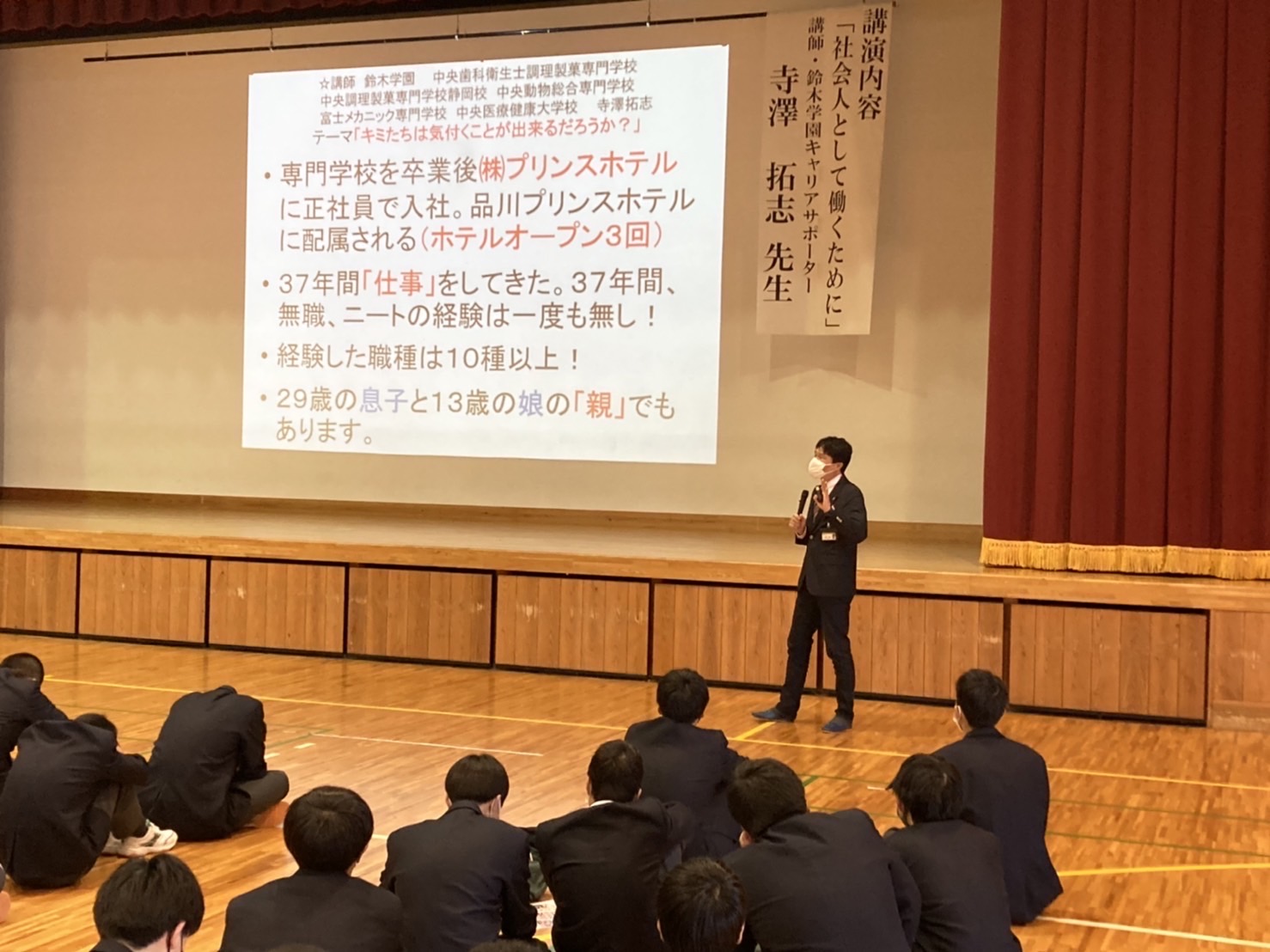5月17日(火)鈴木学園キャリアサポーターの寺澤拓志様に「社会人として働くために」という演題で、2年生ITビジネス、未来創造の2コースに講演をしていただきました。 …