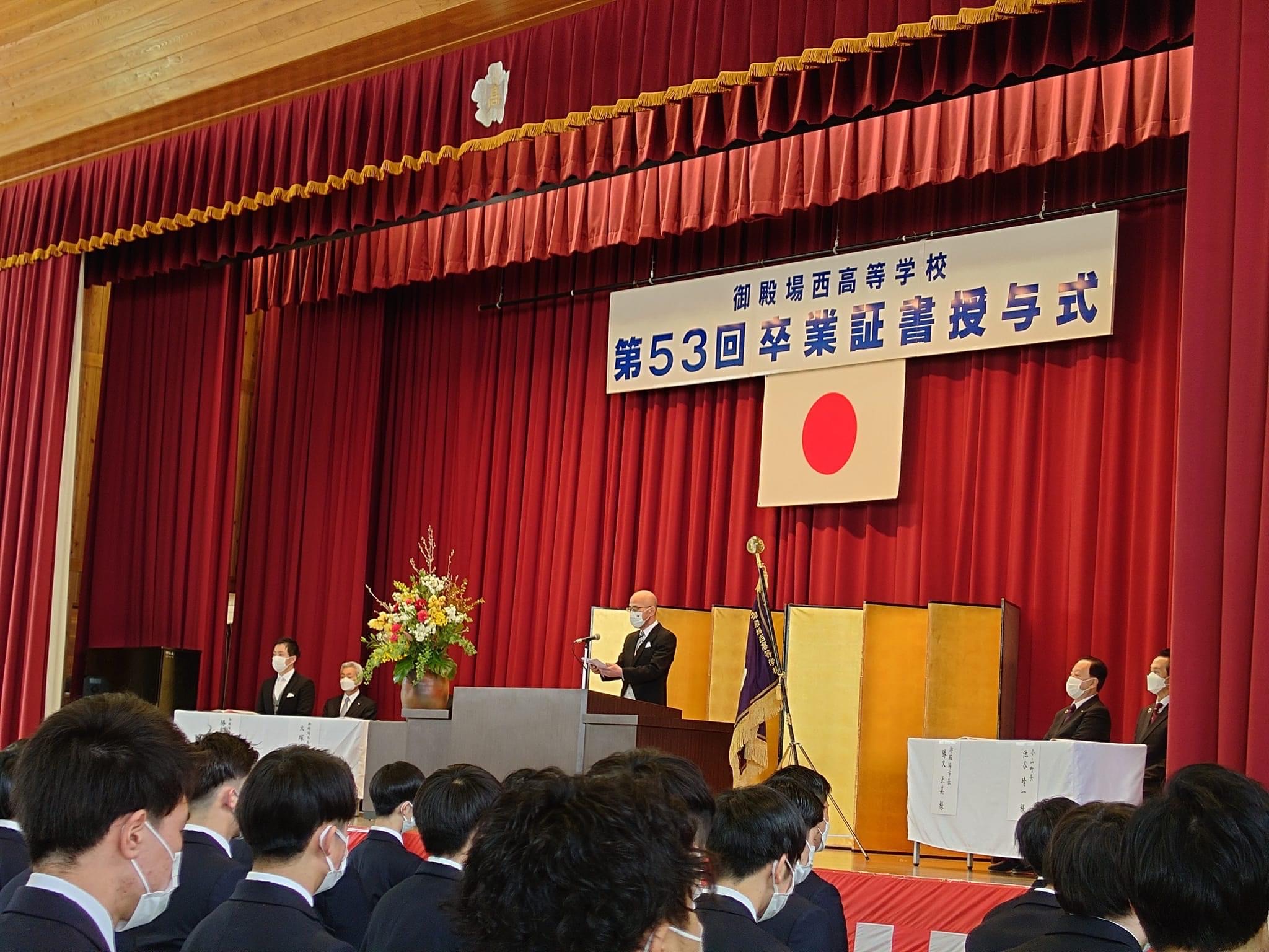 3月1日(火)第53回卒業証書授与式を行いました。 御殿場市長勝又様、小山町長の池谷様をはじめ多くのご来賓の方々にもご臨席を賜り、心より感謝申し上げます。 3年連続…