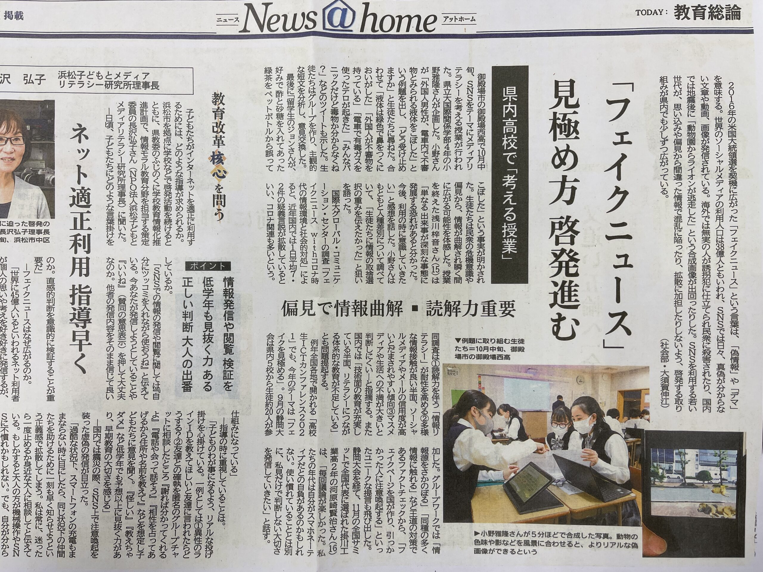 御殿場西高等学校の取り組みを静岡新聞で取り上げていただきました。 今回はフェイクニュースについて。 10月13日(水)静岡県立大学国際関係学部4年生の小野雅隆さんが…