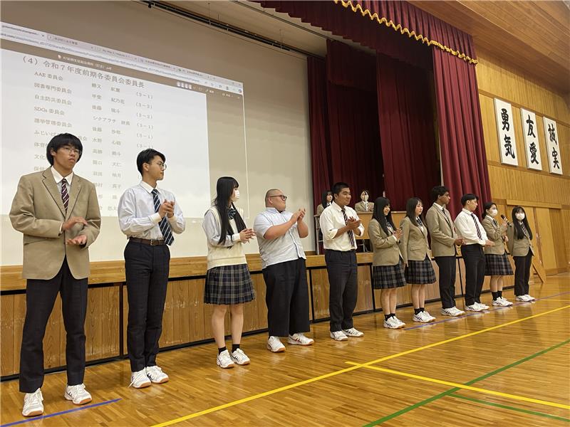 4月17日(木)体育祭結団式が行われました。 生徒による進行のもとで、それぞれのクラス代表が「赤」「青」「黄」のカラー分けの抽選を行いました。 その後、担任以外の先…