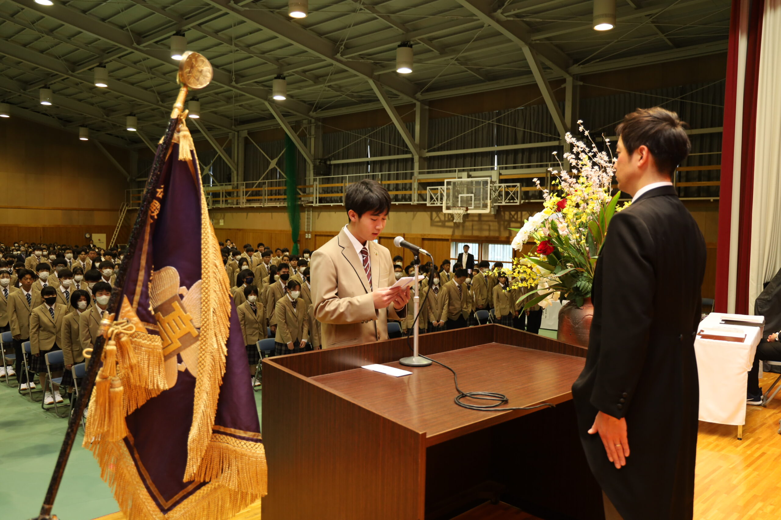 校庭の木々の芽もほころびはじめ、たしかな春の息吹を感じる今日の佳き日に、多数のご来賓の皆様のご臨席を賜り、ここに第55回卒業証書授与式を、盛大に挙行できますことは、…