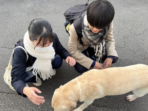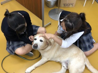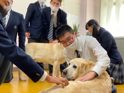 近年、生徒一人ひとりの個性や多様性を尊重する教育が求められています。また、社会の変化により複雑化する問題も多く、そういった生徒たちの心のケアはとても大切です。本校では、これまでのカウンセリングに加えて、2頭のラブラドールによる動物介在教育(AAE)を実施しています。人間関係で悩んでいる生徒、学習や進学関係で悩んでいる生徒など、様々な生徒たちの心に寄り添い、目には見えない形で彼らのサポートをしています。